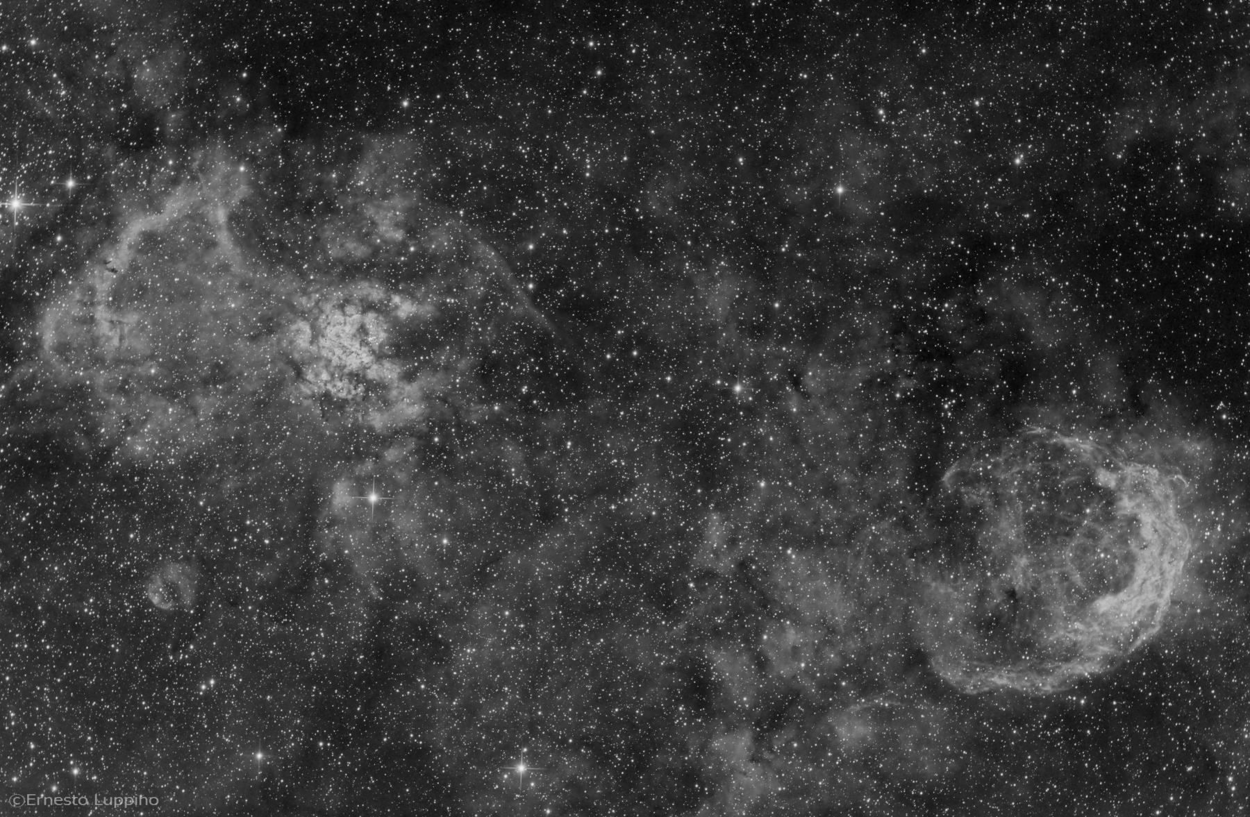 Esta fotografía fue realizada en la Ciudad de Buenos Aires, Argentina (una zona de altísima contaminación lumínica), utilizando un filtro que deja pasar solamente la longitud de onda de la luz generada por el Hidrógeno ionizado (Halfa) y fue realizada en nueve sesiones entre el 20 de Febrero de 2017 y el 19 de Marzo de 2017.