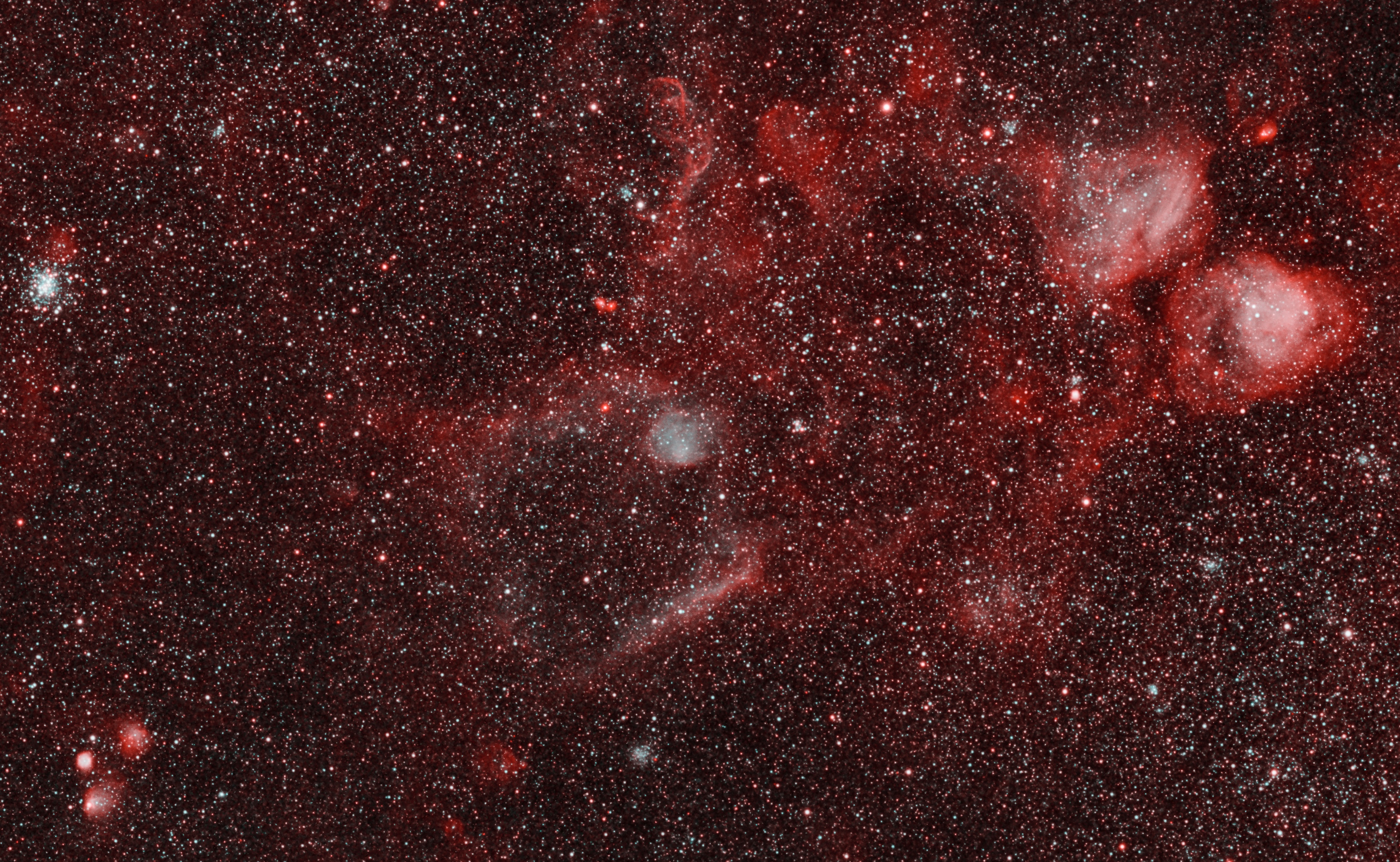 At a distance of approximately 210,000 light-years, across the southern constellations Tucana and Hydrus, lies this Dwarf Irregular Galaxy, which is part of the Local Galaxy Group.